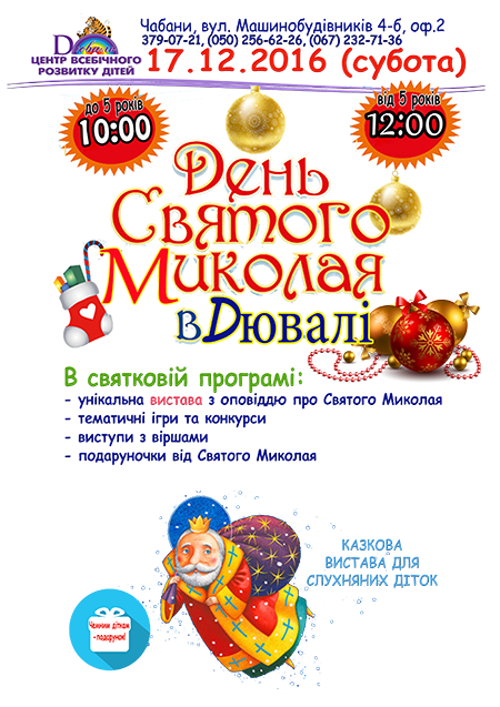 Запросіть Діда мороза додому - запис продовжується! (044) 379-07-21 (067) 232-71-36 (050) 256-62-26 смт Чабани вул. Машинобудівників, 4-Б, оф. 2 _____________________________________________________________________________________________________ Святий Миколай у Дювалі 2021 - запис розпочато (044) 379-07-21 (067) 232-71-36 (050) 256-62-26 смт Чабани вул. Машинобудівників, 4-Б, оф. 2